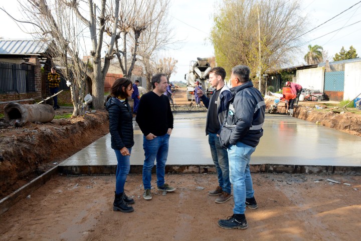 Tras concluir una importante obra pluvial que mejorará el escurrimiento del agua los días de lluvia y realizar mejoras en la red cloacal, el Municipio ahora avanza con trabajos de pavimento de hormigón con cordón cuneta integrado en cada una de sus calles.