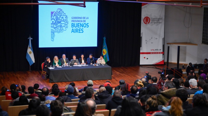 El gobernador de la provincia de Buenos Aires, Axel Kicillof, encabezó este viernes el cierre del Encuentro Bonaerense de Ciencia y Universidad junto a la vicegobernadora Verónica Magario y la intendenta de Quilmes, Mayra Mendoza. Fue en la Universidad Nacional de Quilmes (UNQ), donde anunció la convocatoria a becas doctorales de la Comisión de Investigaciones Científicas (CIC) para estudiantes afectados por los recortes del Gobierno nacional. Participaron también los ministros de Gobierno, Carlos Bianco; y de Producción, Ciencia e Innovación Tecnológica, Augusto Costa; la presidenta de la Comisión Provincial por la Memoria, Dora Barrancos; y el rector de la casa de estudios, Alfredo Alfonso.