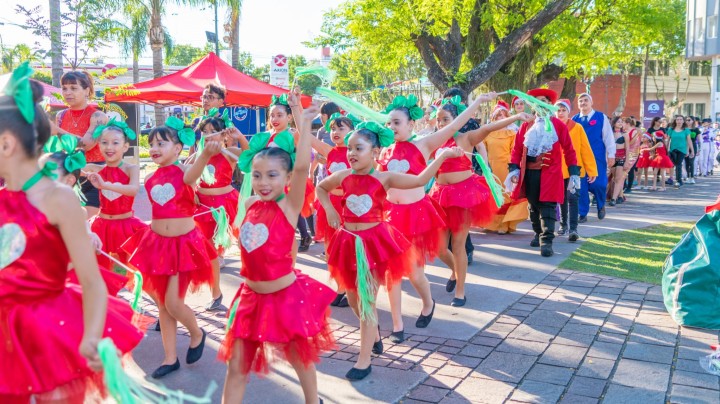 Las actividades comenzaron con un colorido desfile navideño protagonizado por talleres municipales y escuelas de danzas de la ciudad. Luego, cada una de ellas se dirigió al pie del escenario para brindar diferentes números artísticos, al tiempo que la banda municipal de música ofreció una entretenida actuación en el corazón de la plaza, donde también se lucía el pesebre navideño.