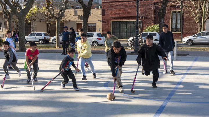 Bajo un sol y una temperatura más que agradable para la época del año, los niños aprovecharon la tarde para disfrutar de partidos de fútbol tenis, tenis de mesa, hockey, básquet, dibujo, juegos de sumatoria de dados y puntería, entre otras propuestas.