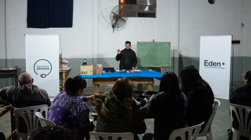 Con el objetivo de profundizar el impacto positivo en la comunidad a través de herramientas formativas para los vecinos y vecinas, la distribuidora EDEN dio inicio la semana pasada, a un curso básico de electricidad domiciliaria en el barrio Las Praderas, en el marco de su “Programa de Oficios”. Un programa de formación dirigido a mujeres y hombres, mayores de 18 años, que viven en contexto de vulnerabilidad o enfrentan situaciones de inequidad, que les ofrece conocimientos útiles para que construyan un futuro laboral sostenible.