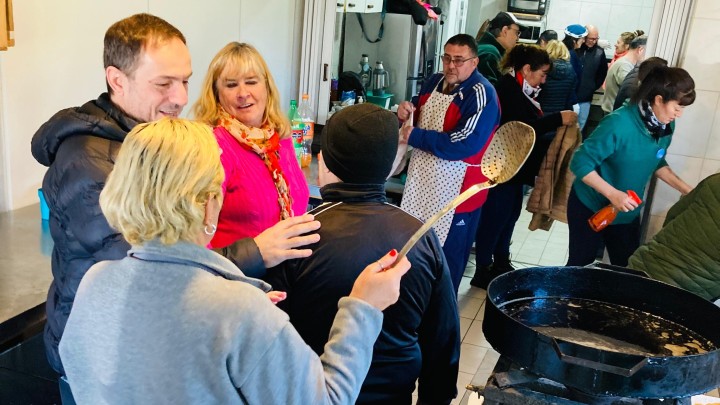 Esta iniciativa tuvo lugar en la sede de la Casa Esperanza donde los militantes de la agrupación cocinaron las empanadas que previamente habían preparado en la sociedad de fomento del barrio Villanueva.