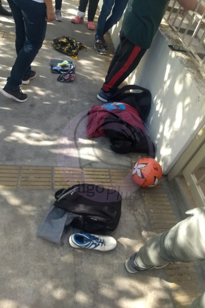 Alertada por un llamado telefónico de una docente de la institución, la Policía se hizo presente en el lugar, y detuvo a algunos de los chicos. Según testigos, otros huyeron corriendo del lugar.