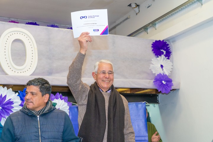 Con la entrega de diplomas, 130 vecinos se egresaron de los cursos gratuitos que dicta el Centro Municipal de Oficios de la calle Carhue, impulsados por la Secretaría de Desarrollo Social, Educación y Cultura del Municipio.