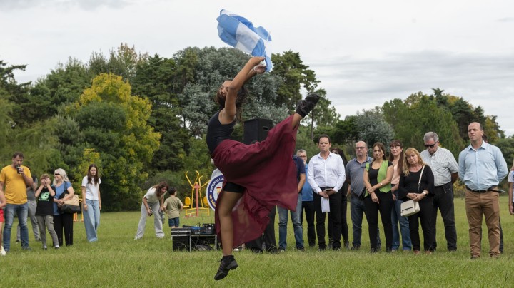 El emotivo encuentro contó con la interpretación de la canción “Sobreviviendo” a cargo de una bailarina local, y la presencia de la Banda y Guardia de Honor del Regimiento 1 de Artillería General Tomás de Iriarte, la Armada, Prefectura Naval y Gendarmería.