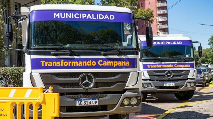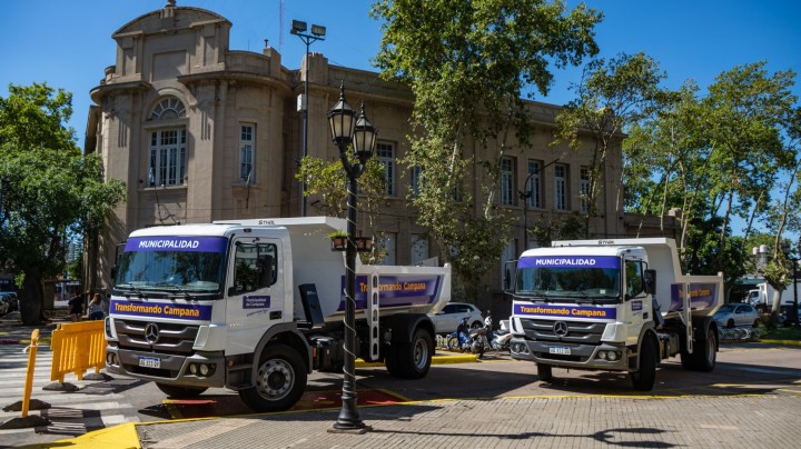 El intendente Abella presentó dos nuevos camiones volcadores que se suman a la flota de la Secretaría de Espacio Público para el mantenimiento general de la ciudad.