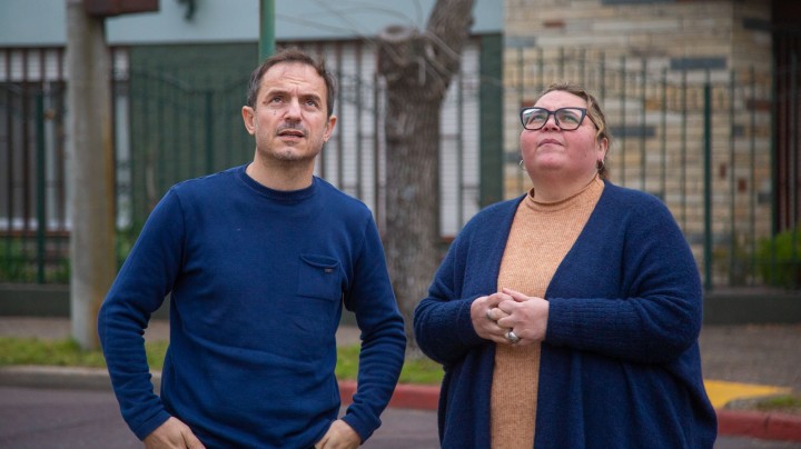El intendente Sebastián Abella supervisó los trabajos que comenzaron sobre equipos situados en la avenida Mitre junto a la subsecretaria de Prevención y Relaciones con la Comunidad, Romina Buzzini.