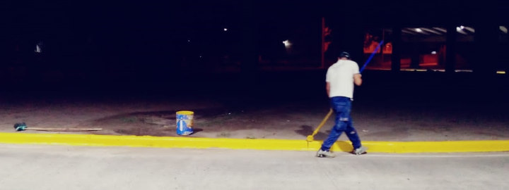 Una cuadrilla de la Dirección General de Tránsito y Transporte llevó adelante el pintado de cordones de calles del casco urbano en momentos de baja circulación vial para evitar complicaciones a conductores y peatones.