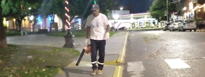 Dos de las zonas alcanzadas fueron la rotonda de la avenida Mitre y ruta 6 y la Plaza Eduardo Costa, donde además se efectuó la limpieza de los cordones cuneta.