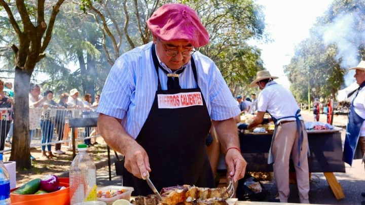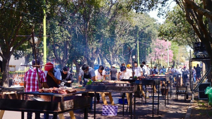 Sobre la calle Sáenz Peña estaba la actividad principal: la competencia de asadores contó con 36 equipos y se dividió en dos turnos (mañana y tarde). Allí, la escena era dominada por el crepitar de las brasas, la carne sobre las parrillas, los delantales y la concentración de los participantes en las preparaciones que completaron los platos que concursaron.