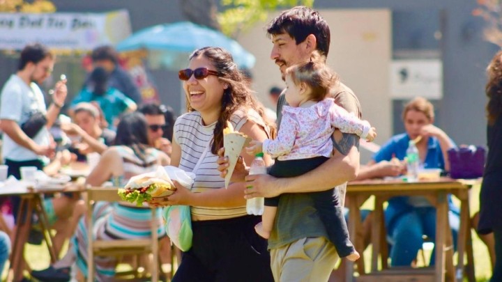 Y ese maravilloso e inconfundible olor a asado también estuvo presente en la otra punta del Campito, sobre la calle Luis Costa, donde se montaron los diferentes stands gastronómicos con una oferta que incluyó especialidades a la parrilla, hamburguesas, empanadas, quesos, embutidos, churros y helados, entre otras exquisiteces.