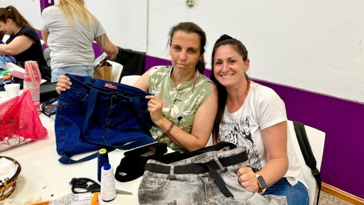 La primera hizo hincapié en la importancia de reciclar prendas en desuso para reducir la contaminación ambiental que genera la industria textil. Y luego se dio paso a la práctica con la elaboración de bolsos.