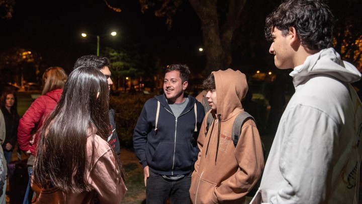 El candidato a intendente de Unión por la Patria, Alejo Sarna, despidió a los jóvenes que desde la plaza República Oriental del Uruguay partieron con destino a Mar del Plata para disfrutar de su Viaje de Fin de Curso.