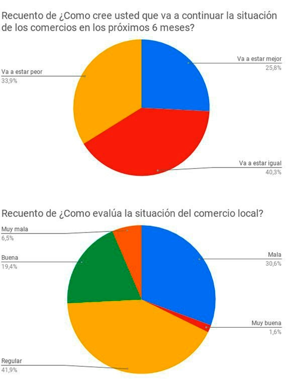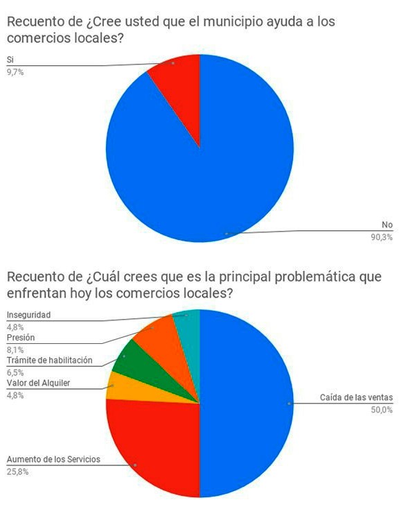 El relevamiento contó con visitas de los integrantes del espacio a comercios locales del centro y de distintos barrios, donde se le hacían preguntas relacionadas a como evaluaban la situación del comercio local, cuál creen que es la principal problemática que enfrentan los comercios locales, en qué porcentaje bajaron las ventas, si creen que el Municipio ayuda al comercio local y cómo creen que va a continuar la situación de los comercios en los próximos 6 meses.