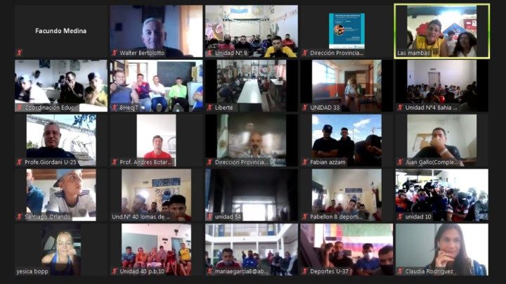 Entre los casi 80 conectados se encontraban más de 1200 internos e internas de cárceles de La Plata (Olmos, Gorina, Los Hornos, Melchor Romero, Villa Elvira), Sierra Chica, Bahía Blanca, Mercedes, Dolores, Junín, General Alvear, Urdampilleta, Saavedra, Florencio Varela, Bárker, Ituzaingó, Lomas de Zamora, San Martín, Batán, Magdalena, Azul y Campana.