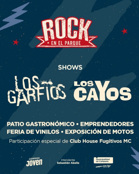 Este sábado 20 de diciembre, desde las 17 horas, “Rock en el Parque”, impulsado por la Secretaría de Inclusión, Educación y Cultura del Municipio, cierra el año con una emblemática presentación protagonizada por dos de las bandas icónicas de la escena musical campanense: Los Cayos y Los Garfios.