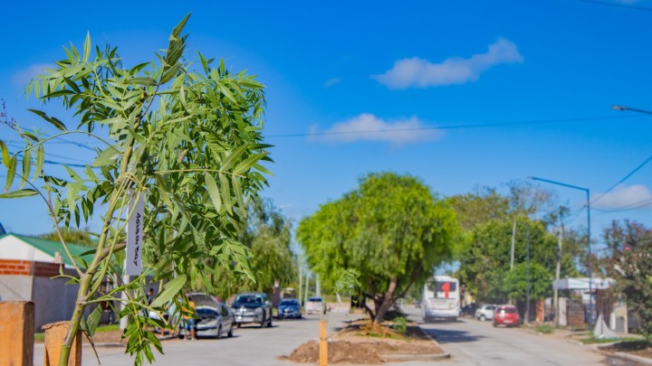 En el marco de la obra de reconstrucción y renovación de la arteria que une la Colectora Sur con la Ruta 6, se plantaron 20 árboles de Aguaribay. En una segunda etapa se plantarán 20 más.