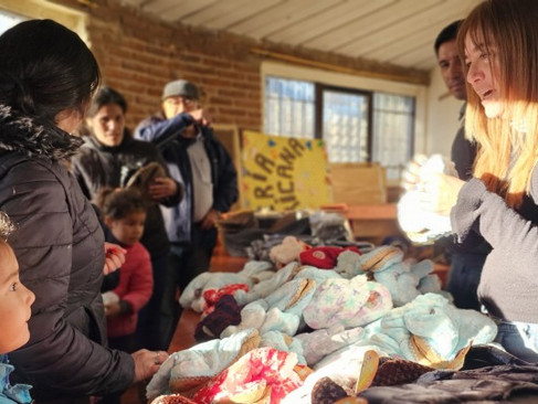 Con la presencia de los concejales Alejo Sarna, Paola Garello y Mariano Ruiz y los militantes y vecinos "Toty" Cortez y Oscar Lima, una numerosa cantidad de adultos, niños y familias enteras se acercaron a la capilla del barrio ubicada en Cordero 630. Allí, recibieron guantes, gorros, pantuflas y otros artículos para combatir el invierno.